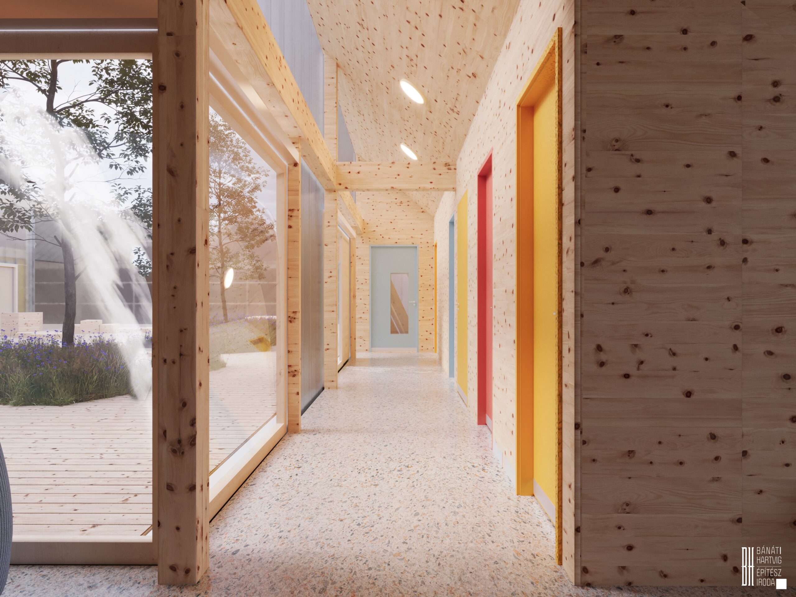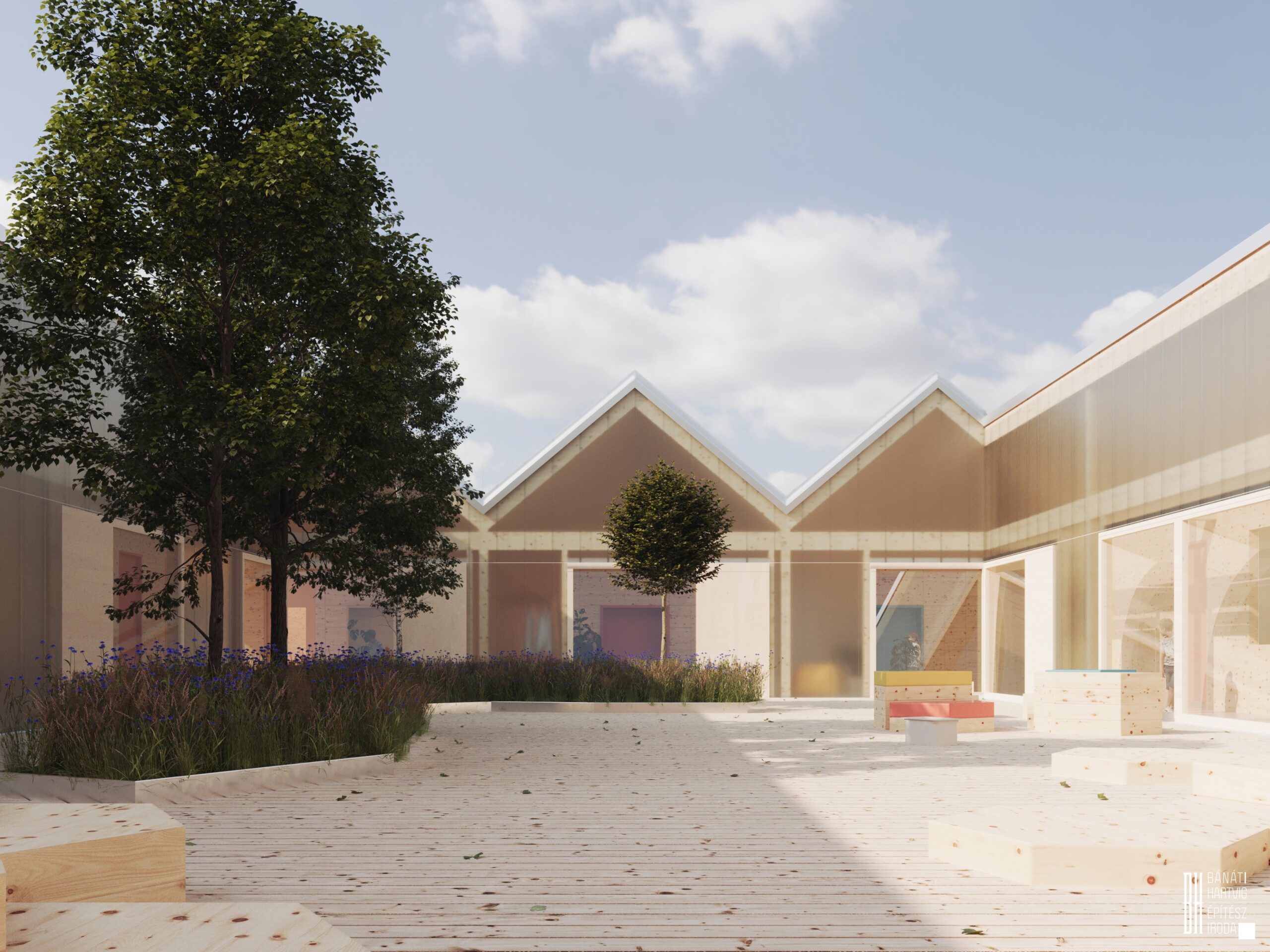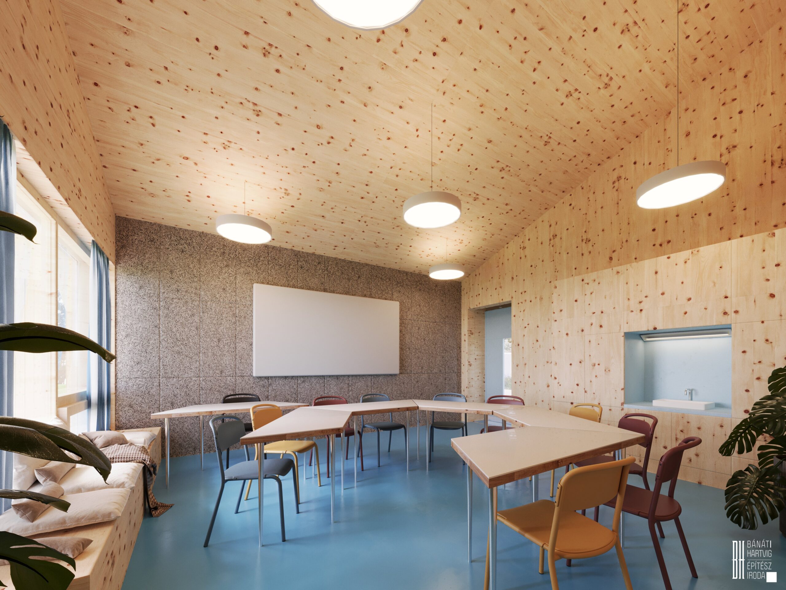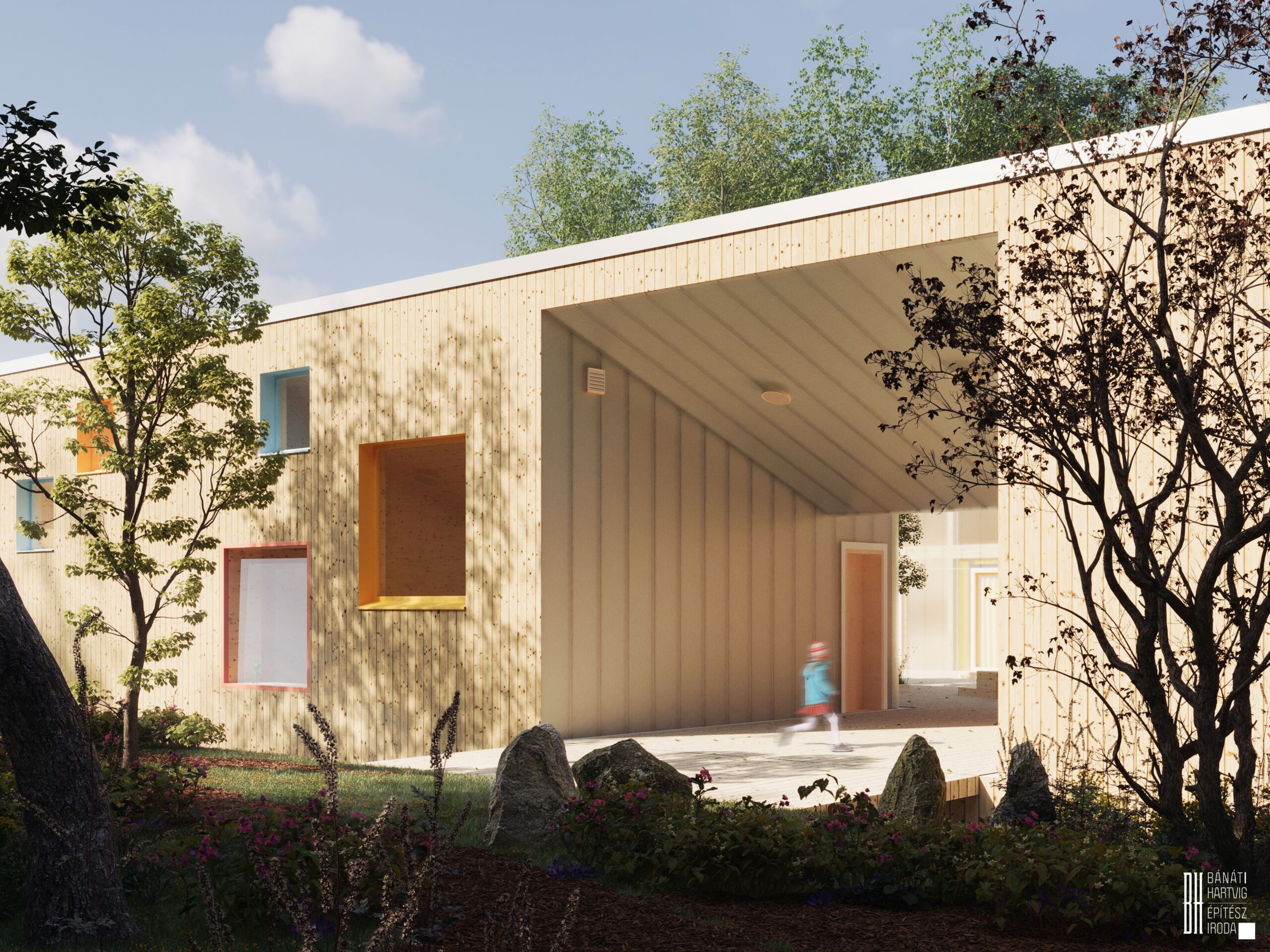 A megbízóval, illetve az épületet bérlő és használó iskolával egyetértésben, majd a kivitelezést végző Hello Wooddal közösen gondolkodva olyan épületet hozunk létre, mely a lehető legkisebb lábnyomot hagyja maga után, anyaghasználata és kialakítása révén pedig jótékony hatással van az emberi szerveztre – így maga az épület is hozzájárul az iskolás gyerekek fejlődéséhez.