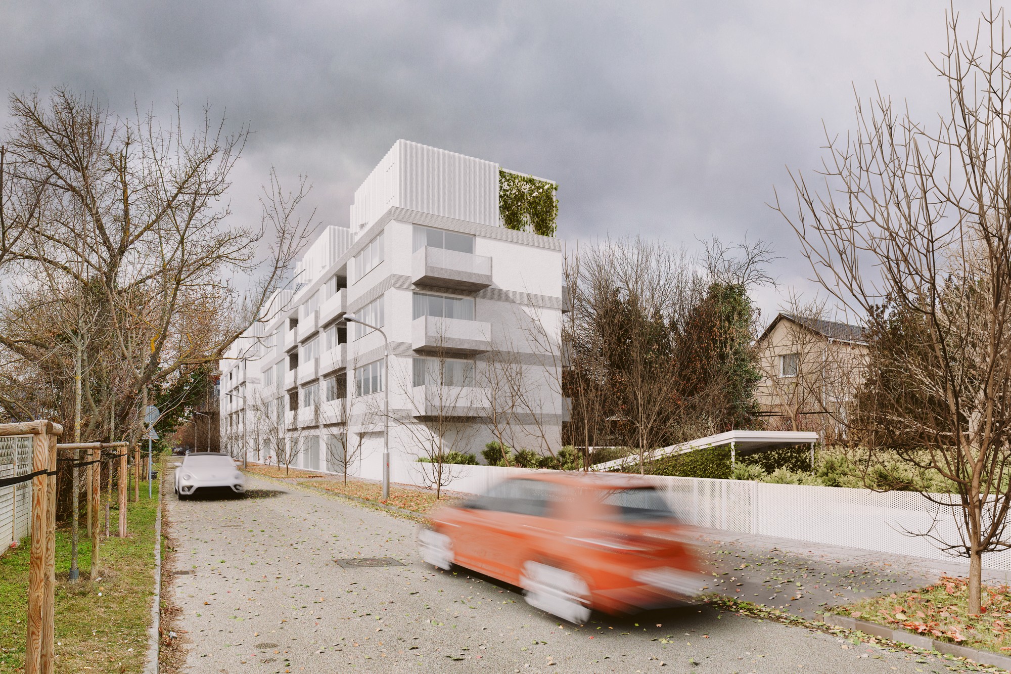 A beépítést a korábbi tervek alapján már megépült pince és földszinti részek határozták meg. Az eredeti elhelyezést a telek hasznosíthatósága, illetve a pincében lévő mélygarázs kialakítása alakította. A statikai lehetőségek korlátozták a beépítés maximalizálását, ezért a teljes terhelhetőség határain maradva egy duplexes felső szinttel fordítottuk ezt a hátrányt a beruházás előnyére egyedi, izgalmas tetőtéri lakásokat létrehozva.